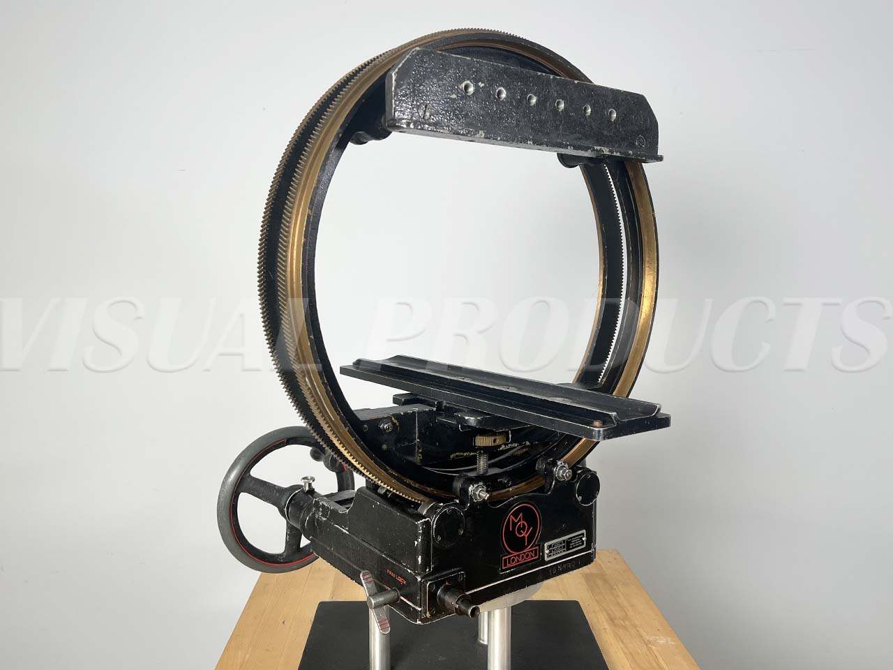 This Moy 2-Axis Rollover Geared Head is in VERY GOOD CONDITION and will be FULLY SERVICED by our in-house support technician at time of sale, prior to shipping. This *VERY RARE* piece of Moy support equipment is designed for 360* roll/pan camera rotation & features a 2-speed transmission on each axis. This Moy Rollover Geared Head is equipped with dovetail plate & counterweights for camera rigging, as well as a mitchell base for mounting the head. Highly sought-after for their exceptional build quality, this rare piece of film equipment will arrive READY TO WORK in its fitted shipping case & is backed by our 6 MONTHS PARTS AND LABOR WARRANTY.